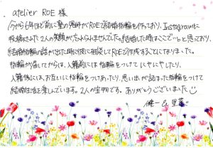 滋賀県守山市 / 手作り結婚指輪 Kenichi & Rina 様よりお手紙が届きました。