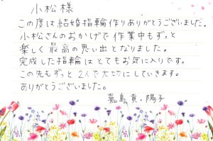 兵庫県三木市 / 手作り結婚指輪 Mitsugu & Yoko 様よりお手紙が届きました。