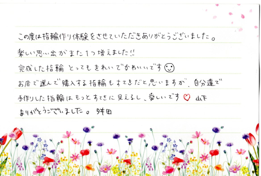 大阪府吹田市/ 手作り結婚指輪 山下 & 舛田 様よりお手紙が届きました。